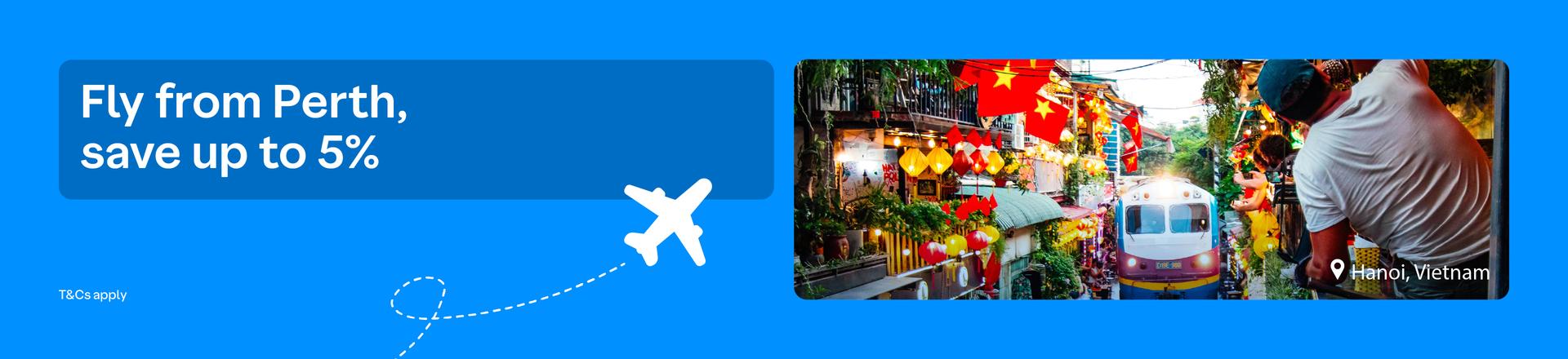 Save up to 5% when you book any flight departing from Perth. More destinations, better value, same easy booking experience.Plan your next trip with confidence and fly for less. Bali routes are excluded