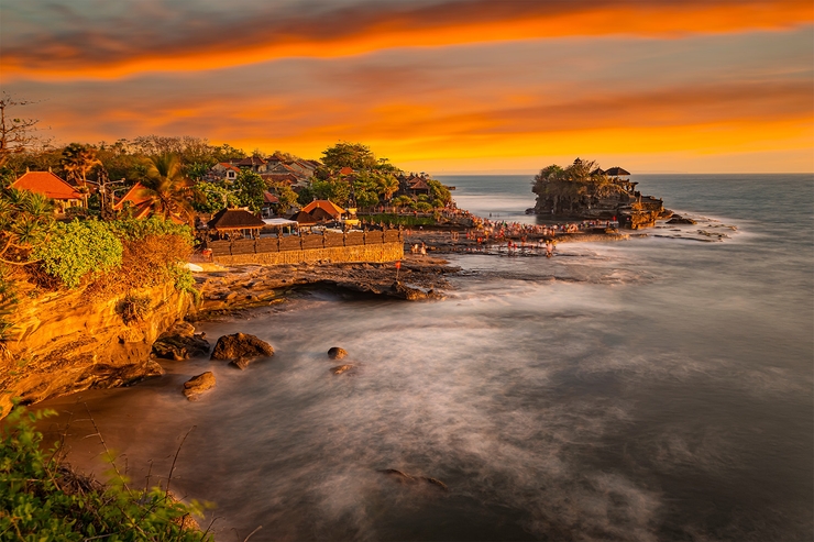 Iconic sunset at Tanah Lot