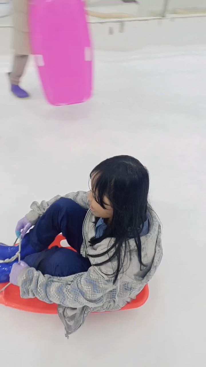 The drag tube and slide are so much fun, guys. The gondola is also really fun, guys, with the snow falling.