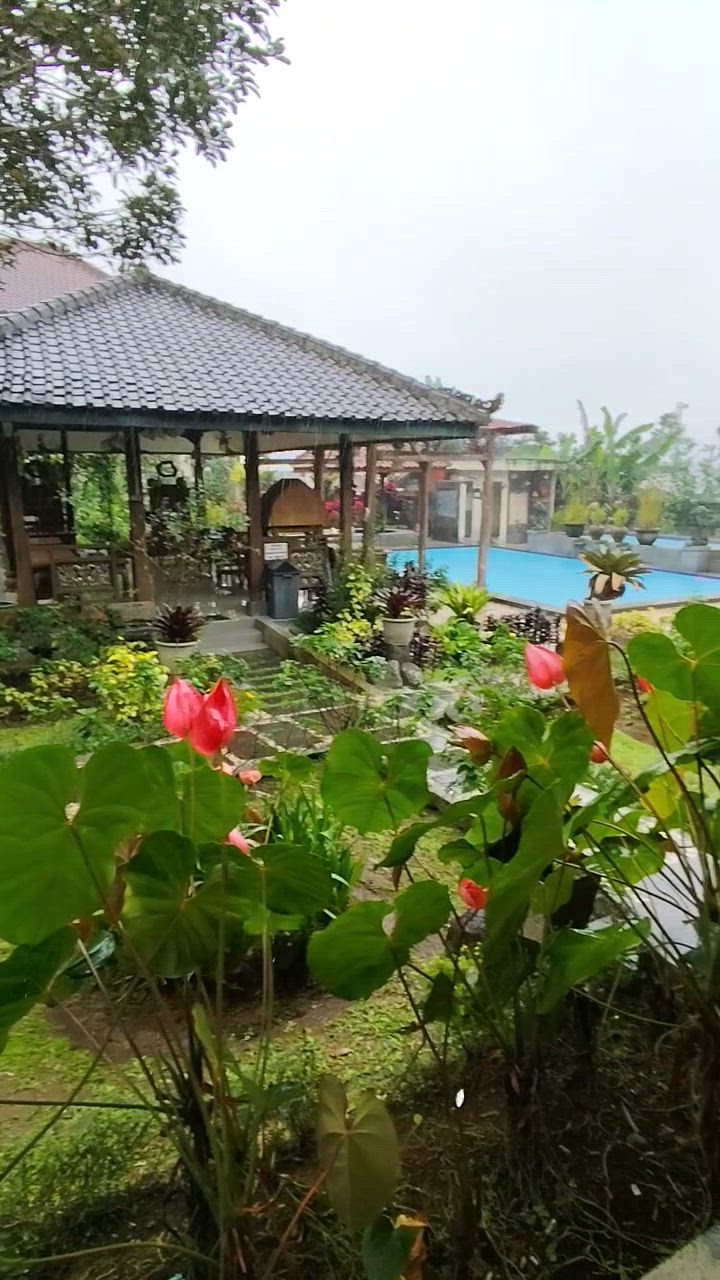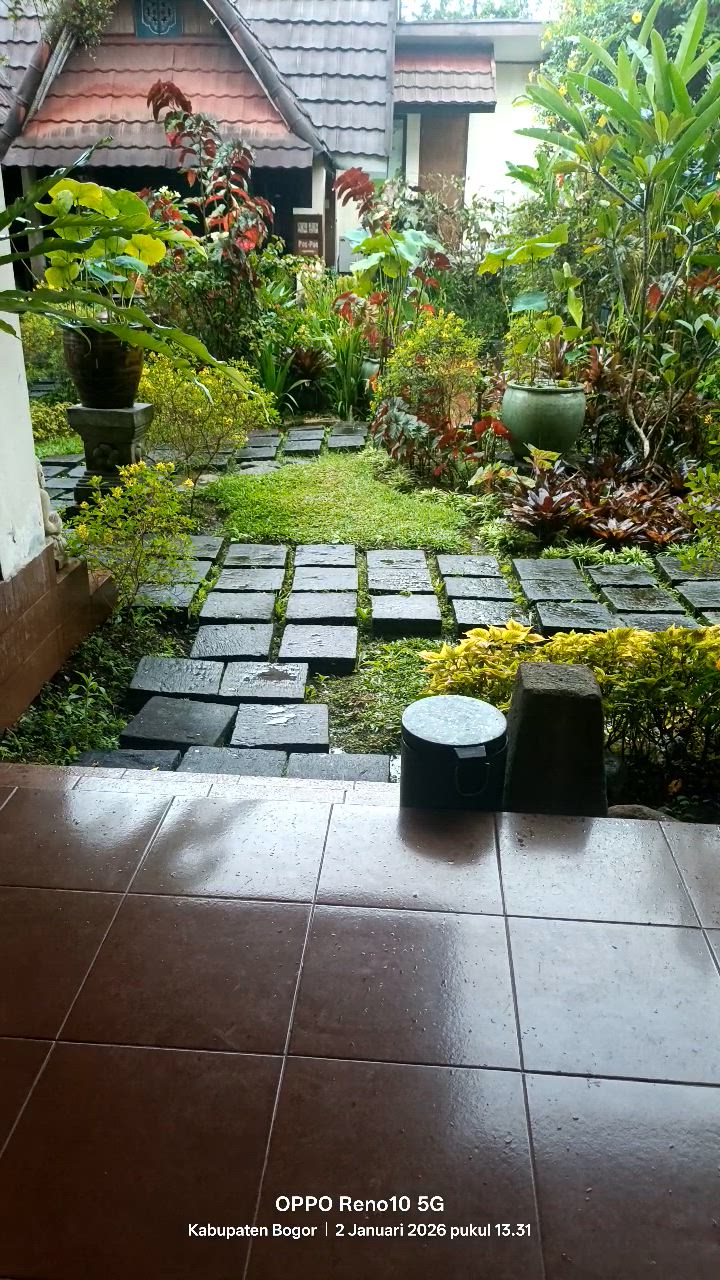 My first experience staying at this hotel. Location: Strategically located on the main road. Building: There are 2 hotel areas, area 1 is near the swimming pool, area 2 is near the flower garden + fish pond. Area 1 & area 2 are separated by a wall. Area 2 is the room far from the swimming pool + lobby. The building in area 2 has standard non-AC rooms (3 rooms), ethnic Duluxe twin rooms (4 rooms) & there are several other types of rooms that I don't know the type but the building number is T1-T6. So if you get a room in code T and code P, it is located in area 2. Room: I booked a standard non-AC room, but it turns out it is in area 2. The room is spacious, complete amenities, tea, coffee, sugar, water + electric kettle are complete & can be used. Only the blanket is a bit dirty. There is a desk + work chair, a small table, a cupboard and a sideboard under the TV. The bathroom is clean & not cramped, the water heater works, the sink is in front of the bathroom. The TV only uses a STB, not a smart TV. Because my room is in front of the fish pond, at night I can hear the sound Frog. Service: All staff are friendly and informative. They also handle complaints fairly quickly. When I stayed, there was live music in the evenings and a complimentary coffee break in the hotel lobby. Breakfast was quite tasty. The menu included homemade bread with various jams, chicken porridge, coffee, tea, and water, fried rice, noodles, fried chicken, potato and carrot spring rolls, capcay, pickles, crackers, and fruit. Facilities: Ample parking, and a swimming pool divided into two sections for children and adults. The depth of the children's pool is approximately 60 cm. The pool is clean and the water doesn't sting the eyes. Near the pool are two bathrooms and one shower area. There is a playground area with swings and a seesaw. This hotel is suitable for those who love art and flowers, as it has a Balinese and Javanese artistic feel and plenty of flowers.