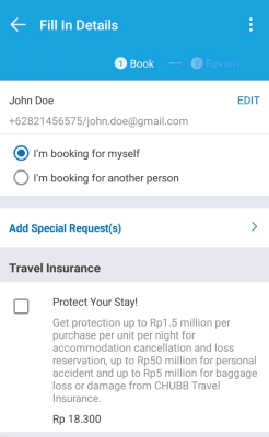 3. Tap Add Special Request, then select your special requests and fill in the details. Tap Done to submit your special requests. Tap Continue to complete your booking.