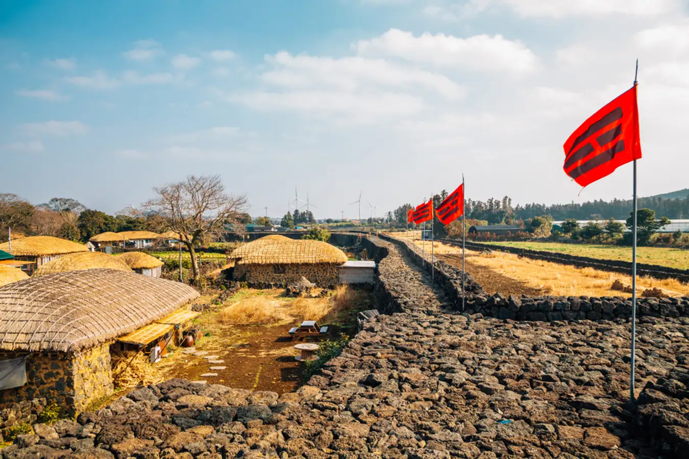 Jeju Folk Village is a popular tourist attraction on Jeju Island that allows visitors to experience traditional life there. With over 100 traditional houses and facilities, this site provides a glimpse into life on Jeju Island in 1890. The villages on display were reconstructed based on research and analysis by historical experts in Jeju, to make the conditions of the villages as similar as possible to their historical counterparts.
