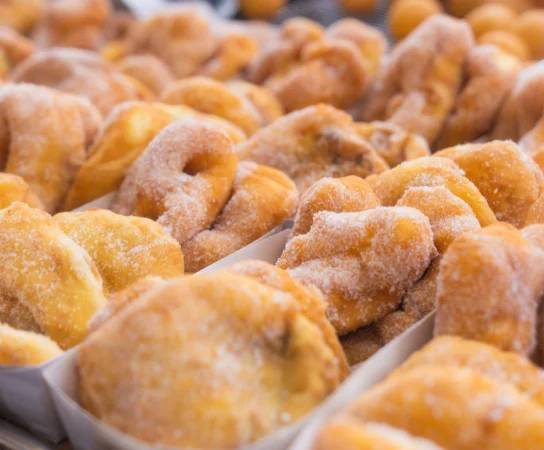 This Korean-style donut, known as kkwabaegi, is a beloved street snack made from a mix of flour and sweet rice powder. The dough is twisted into a spiral shape, deep-fried to golden perfection, and then coated with sugar. Soft, chewy, and delightfully sweet, it’s one of the must-try street foods in Korea, especially in Daegu’s Seomun Market.