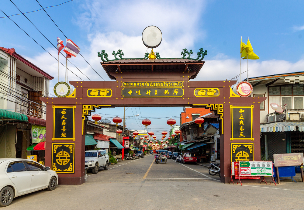 เดินทางท่องเที่ยวกันต่อกับสถานที่ถัดมาอย่าง ตลาดโบราณชากแง้ว หรือ ตลาดชากแง้ว ที่หากย้อนรอยไปเมื่อ 100 ปีก่อนตลาดแห่งนี้เคยเป็นชุมชนชาวจีนโบราณที่เดินทางมาเพื่อค้าขายกันอย่างคึกคัก จึงทำให้บริเวณสถานที่แห่งนี้เองกลายเป็นแหล่งชุนชมจีนที่เต็มไปด้วยสินค้าต่าง ๆ มากมายที่ยังคงเหลือไว้ซึ่งวัฒนธรรมที่น่าหลงใหลให้เราได้มาเดินสัมผัสถึงความเก่าแก่ ด้วยร้านค้าต่าง ๆ มากมายที่พาได้มาค้าขายเรียงรายให้เราได้เลือกซื้อเลือกหากันอย่างเต็มอิ่ม แถมยังมีภาพความเก่าแก่เต็มสองข้างของบ้านเรือนโดยรอบที่ยังคงอนุรักษ์ไว้ให้รุ่นหลัง ๆ ได้มาชื่นชมกันอีกด้วย ยิ่งถ้าได้พกกล้องฟิล์มมาสักตัวแล้วเดินถ่ายรูปที่ตลาดแห่งนี้แล้วละก็จะยิ่งได้บรรยากาศแนววินเทจเพิ่มขึ้นอีกเท่าตัวอย่างแน่นอน