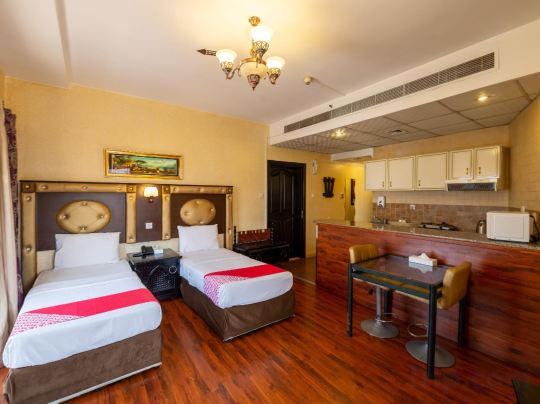 The receptionist is not friendly, the room is usually not too clean, I got a good price of ± 300,000, the room I ordered wasn't available, was moved to a 3 bed room with a kitchen and others (in this case I'm lucky). There is an additional AED 10 / night fee, he said for foreigners. Not good, but not too bad we have to check out on 12 (on time), no spare time (I say, I need 1 or 2 hour to wait my friend pick me up, they said no, you wait in lobby not in your room) that's ok, i'll come back, if other hotel full booking.