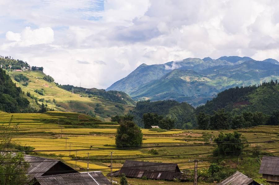 Cat Cat Village dikelilingi oleh lanskap pegunungan memukau, menawarkan pemandangan yang tidak akan Kamu temukan di tempat lain. Hamparan sawah terasering hijau melingkupi desa ini, menciptakan pola-pola indah dan harmonis dengan lingkungan sekitarnya.