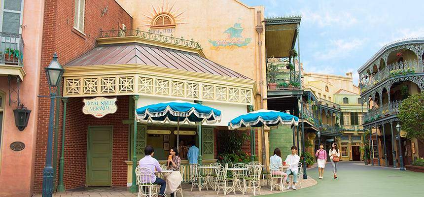 Royal Street Veranda terinspirasi dari atmosfer kota New Orleans yang terkenal dengan suasana yang kaya budaya, musik jazz, dan masakan khas yang menggugah selera. Restoran ini terletak di salah satu area Tokyo Disneyland, dan menawarkan suasana jalanan bersejarah yang penuh warna. Restoran ini memberi nuansa jalanan bersejarah dengan desain arsitektur khas New Orleans yang penuh dengan keindahan klasik, lengkap dengan balkon dan dekorasi yang mengingatkan pada kota pelabuhan tersebut.