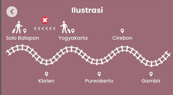 Untuk ilustrasi memudahkan, penumpang KA Argo Lawu relasi Solo Balapan-Gambir, di tiketnya tertera keberangkatan dari Stasiun Yogyakarta dan ingin naik dari stasiun awal Stasiun Solo Balapan. Pada kondisi demikian, maka penumpang tersebut tidak dapat naik dari Stasiun Solo Balapan.