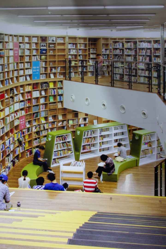 Tempat ini dulunya merupakan gedung balai kota yang disulap menjadi taman bacaan yang sangat luas. Gaya arsitekturnya pun menggabungkan nuansa perpustakaan modern sekaligus mempertahankan gaya klasik khas Korea.