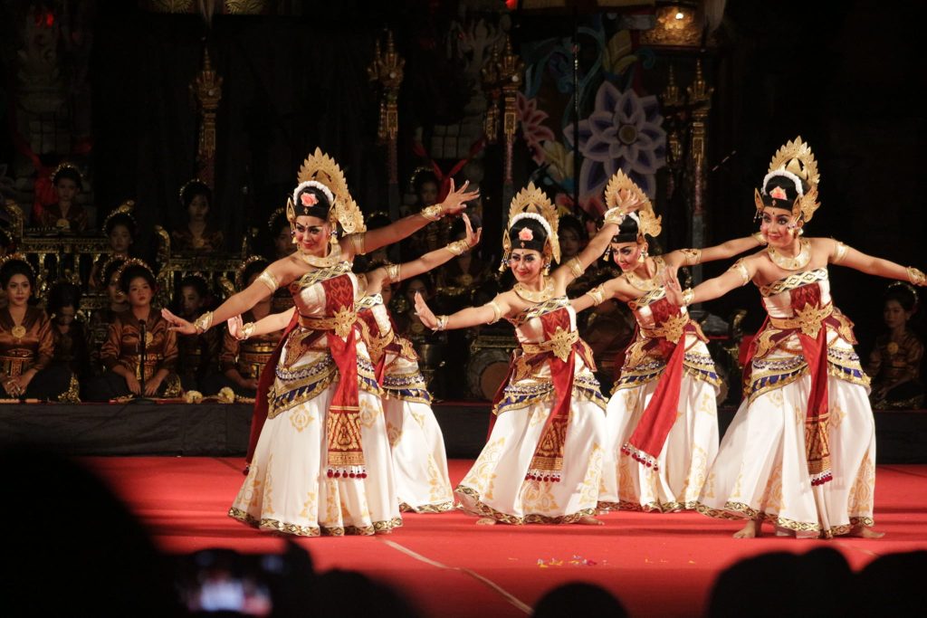 Tari Kebyar Terompong dari Bali memadukan permainan alat musik terompong dengan gerakan tari yang energik. Dalam tari kreasi, elemen visual seperti pencahayaan panggung yang dinamis ditambahkan untuk memperkuat kesan teatrikal.