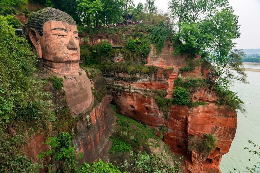 Meskipun berada di luar Chengdu, Leshan Giant Buddha adalah salah satu situs wisata yang wajib dikunjungi saat berada di kawasan ini. Terletak sekitar 120 km dari Chengdu, patung Buddha raksasa yang dipahat di tebing batu ini adalah yang terbesar di dunia dengan tinggi mencapai 71 meter. Leshan Giant Buddha telah diakui sebagai Situs Warisan Dunia UNESCO.