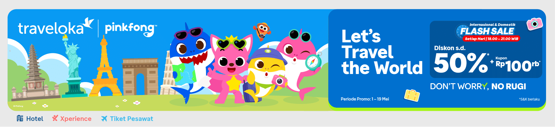 Dapatkan diskon terbaik s.d. 50% + 30% ekstra cashback untuk Tiket Pesawat, Hotel, Xperience atau produk liburan lainnya.
