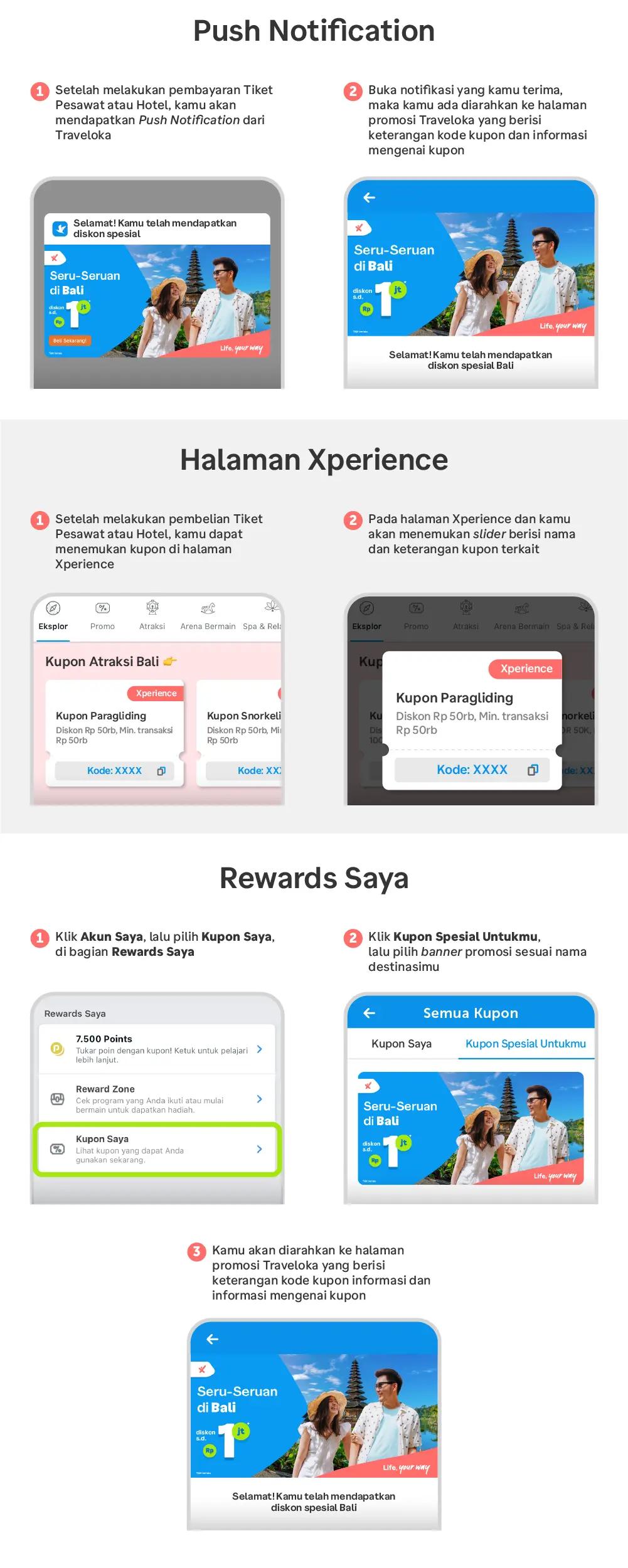 Dapatkan kode kupon Xperience untuk setiap pembelian penerbangan ke Bali.