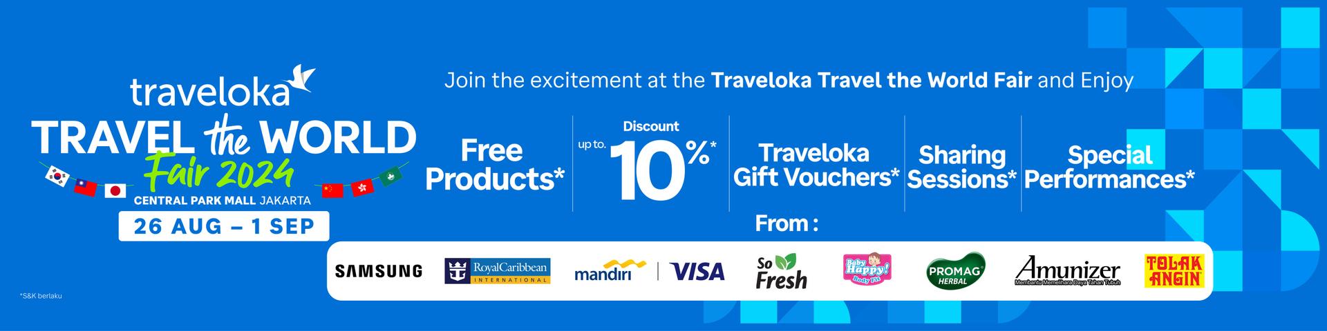 Nikmati penawaran Spesial Diskon s.d 6 juta Rupiah, Tiket Gratis Liburan naik Cruise, dan Merchandise Exclusive dari Royal Caribbean hanya di Traveloka Travel the World Fair, Central Park Mall, Jakarta tanggal 26 Agustus - 1 September 2024.