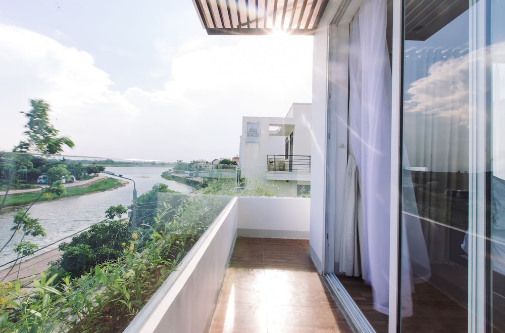 Villa kecil yang indah dengan tanaman merambat dan bunga-bunga indah. Kolam renang kecil pasti tidak berenang tetapi duduk dengan sarapan untuk memiliki perasaan santai. Kami memiliki balkon di depan pemandangan sungai Thu yang indah. Namun sedikit pertanyaan tentang desain ruangan :-) balkon terlalu lebar seperti gaya pakaian yang mengering, sementara ruangan tidak memiliki cermin rias, toilet tanpa bak mandi 😂