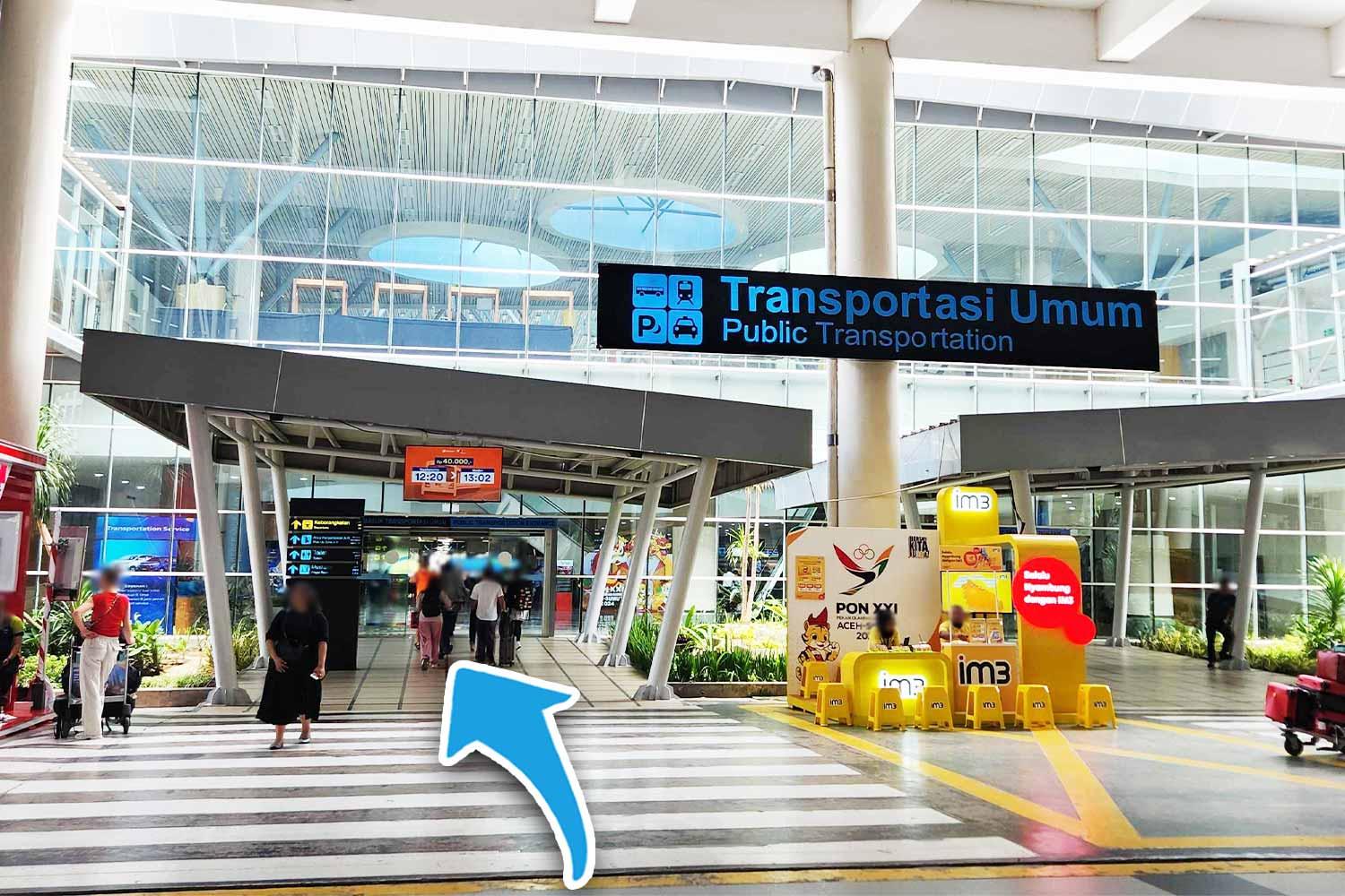 게이트를 나와서 대중교통 표지판을 향해 우회전하세요.