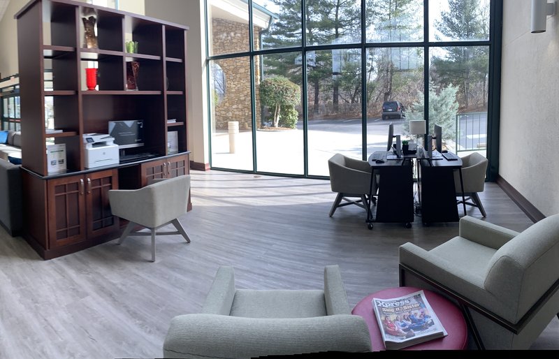 Convient to Asheville and the airport. Nice common areas to hang out in. It was nice to have a bar and restaurant inside the hotel. Food and drinks were good.