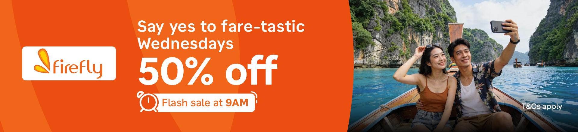✈️ 50% OFF Firefly (FY) Flights every Wednesday, from 9AM!