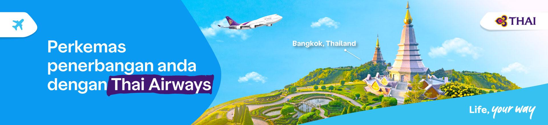 😊 Izinkan kami merealisasikan percutian di destinasi impian anda dengan Thai Airways! ✈️ 🎉 Dekat mahupun jauh, nikmati diskaun istimewa apabila anda tempah penerbangan anda di Traveloka, aplikasi gaya hidup anda! 💙