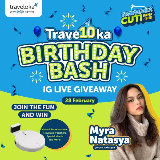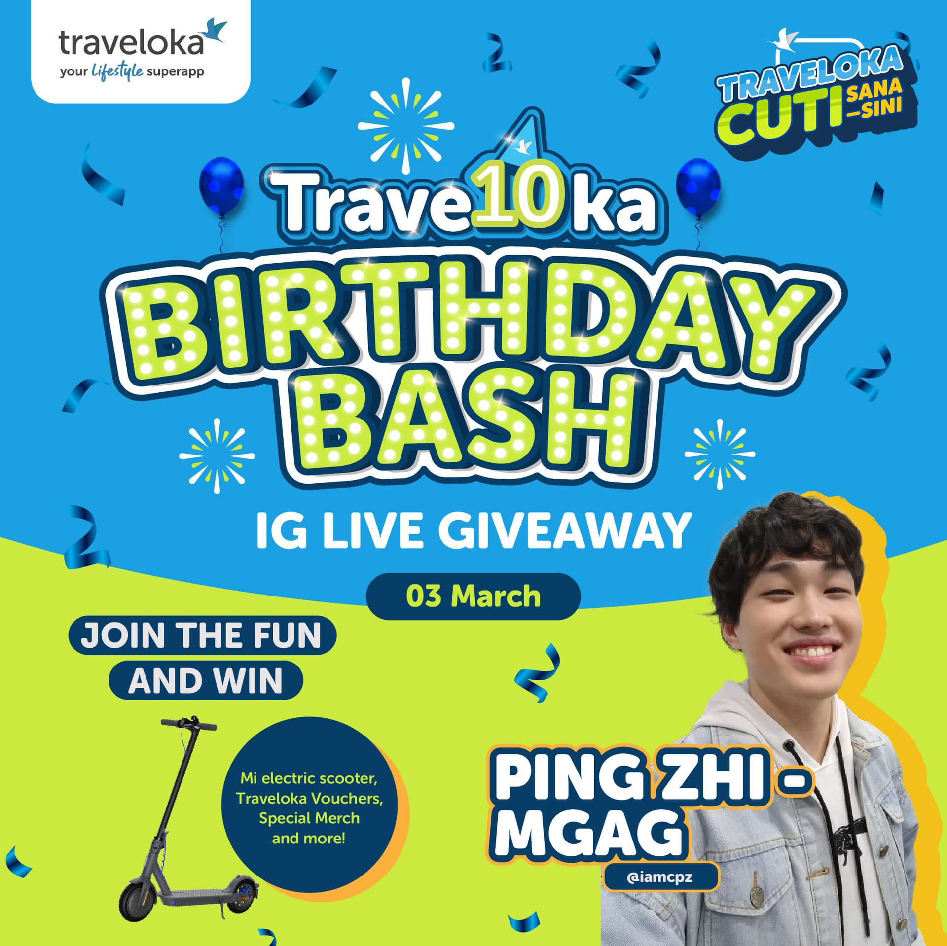 🎉 Woohoo! Ini adalah ulang tahun Traveloka yang ke-10, dan kami ingin menjemput anda ke pesta @TravelokaMY IG Live kami pada 6 petang, 28 Februari hingga 6 Mac setiap hari. 📱