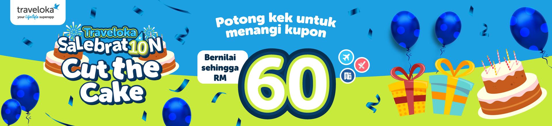 🤳 Jimat lebih untuk hotel idaman anda dengan KUPON TAMBAHAN BERNILAI SEHINGGA RM 60! Klik banner di bawah dan main game Cut The Cake di Traveloka App sekarang. 🍰