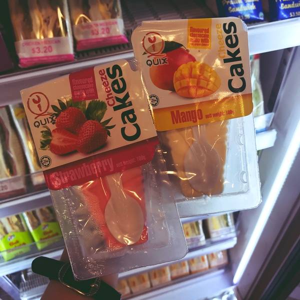 เอาใจสายหวานที่ชอบทานขนมเค้ก ลองไปที่ตู้แช่เย็นดู ก็มีขนมเค้กที่น่าสนใจอย่างรสที่เรานำมาแนะนำก็รสมะม่วงและสตรอว์เบอร์รี่ ส่วนราคาก็พอๆ กับน้ำเปล่าที่สิงคโปร์เลยแหละ อยู่ที่ 2 ดอลลาร์สิงคโปร์กว่าๆ ซื้อแล้วแบ่งกันชิม ไม่เสียหาย