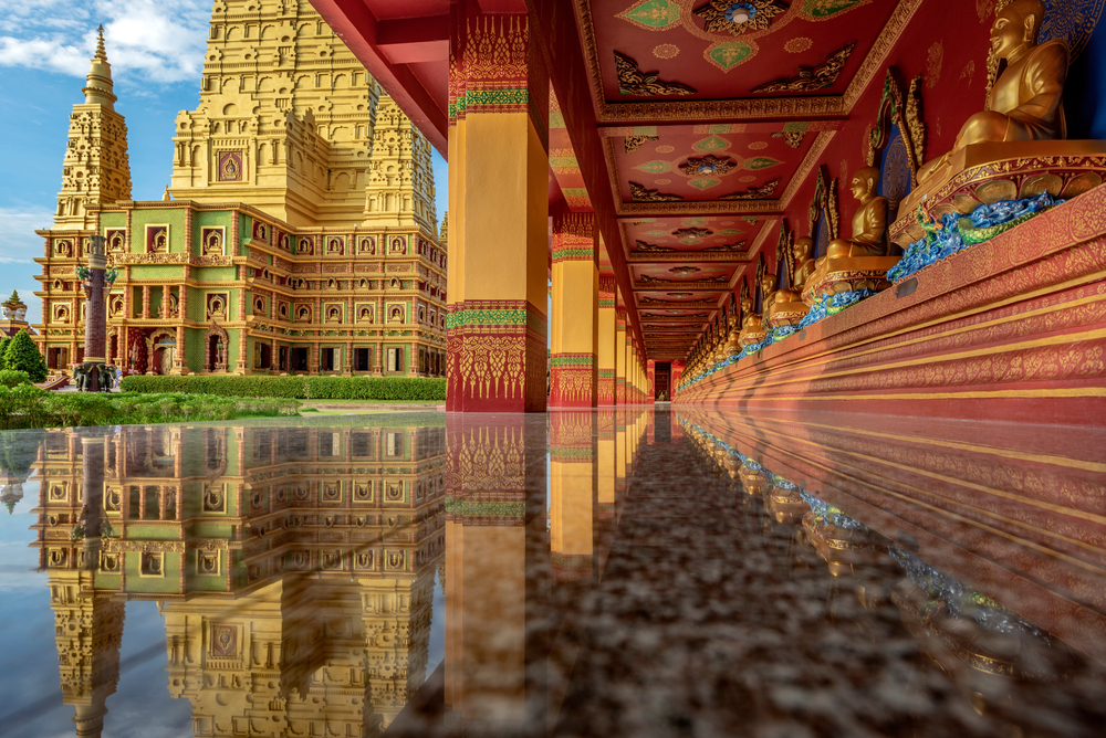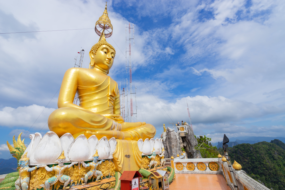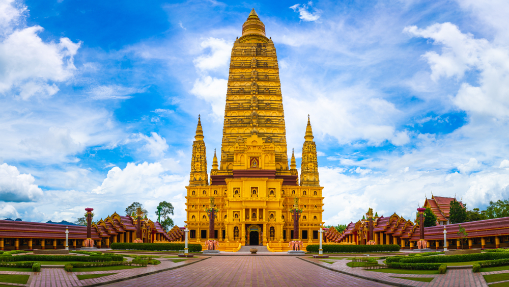 วัดมหาธาตุวชิรมงคล หรือวัดบางโทง เป็นวัดชื่อดังของจังหวัดกระบี่ที่ผู้คนต่างให้ความสนใจเป็นอย่างมาก เพราะความโดดเด่นของวัดแห่งนี้อยู่ที่สถาปัตยกรรมของ“พระมหาธาตุเจดีย์ เฉลิมพระเกียรติ ๕๐ พรรษา มหาวชิราลงกรณ” ที่สร้างขึ้นคล้ายคลึงกับมหาเจดีย์พุทธคยาในประเทศอินเดีย โดยมีการออกแบบและประดับตกแต่งด้วยการสีเหลืองทองอร่าม ตั้งตระหง่านอย่างโดดเด่นงดงาม จนกลายเป็นไฮไลท์สำคัญที่นักท่องเที่ยวสนใจและอยากเดินทางมาเยือน เพื่อกราบไหว้ขอพร เสริมความเป็นสิริมงคล และถ่ายรูปคู่กับพระมหาเจดีย์เพื่อเป็นการเช็กอินนั่นเอง