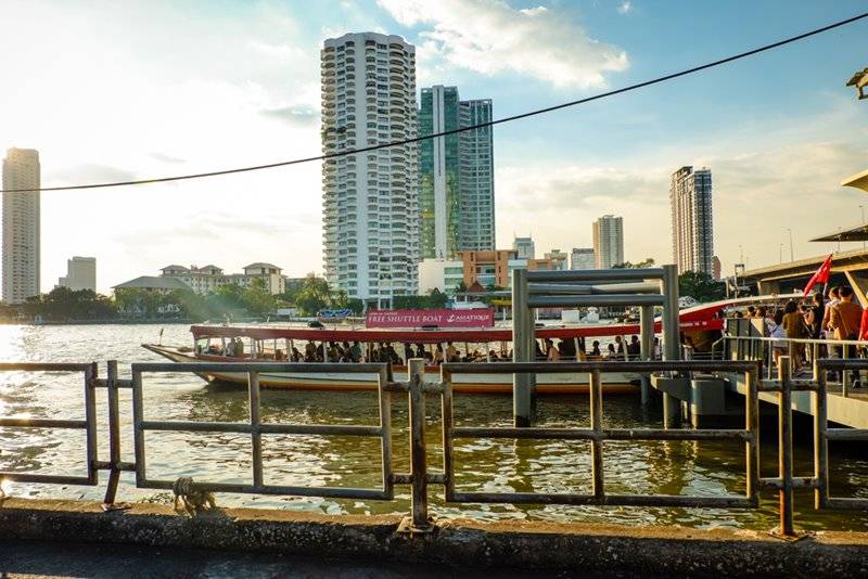 สำหรับใครที่จะเดินทางมาเอเชียทีค นอกจากจะเดินทางมาด้วยรถยนต์แล้ว ตอนเย็นๆ จะมีเรือบริการรับส่งฟรีจากท่าเรือบริเวณสะพานตากสินให้ด้วยนะค่ะ โดยสามารถนั่งรถไฟฟ้า BTS ลงสถานีสะพานตากสินแล้วต่อเรือ Shuttle Boat ของเอเชียทีค โดยเรือจะเริ่มให้บริการในช่วงเย็นตั้งแต่เวลา 16.00 – 20.00 น. ทุกวันค่ะ