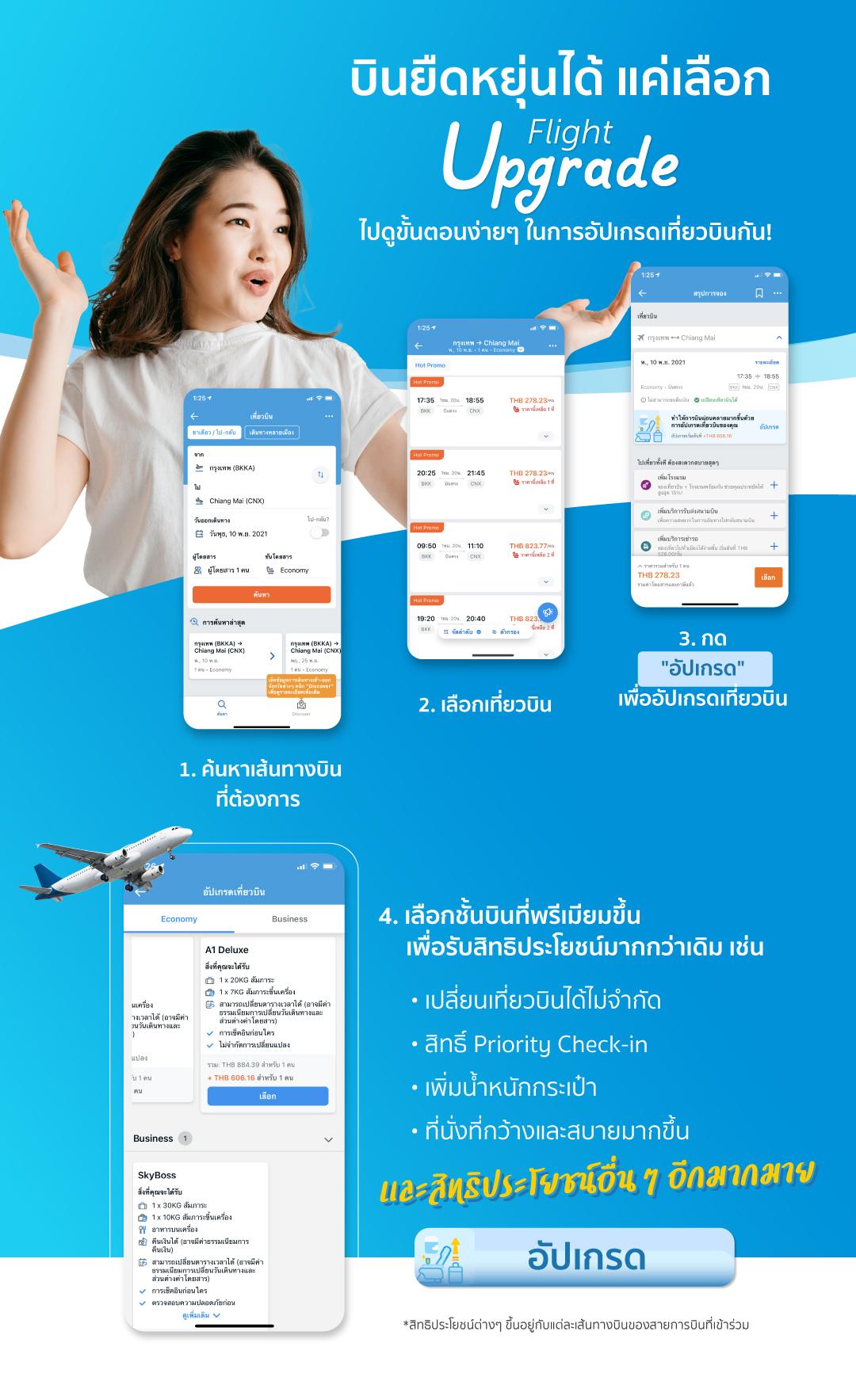 กดอัปเกรดเที่ยวบิน บินสบายใจกว่า พร้อมได้สิทธิประโยชน์มากมาย