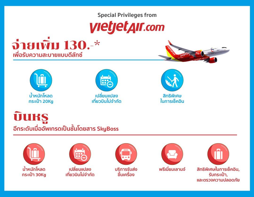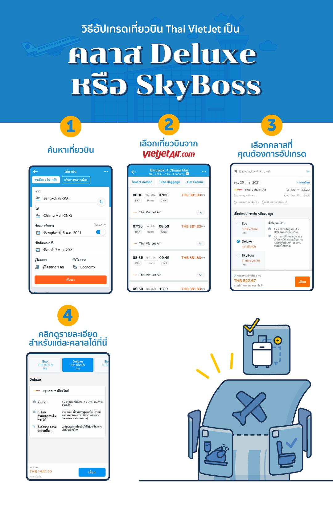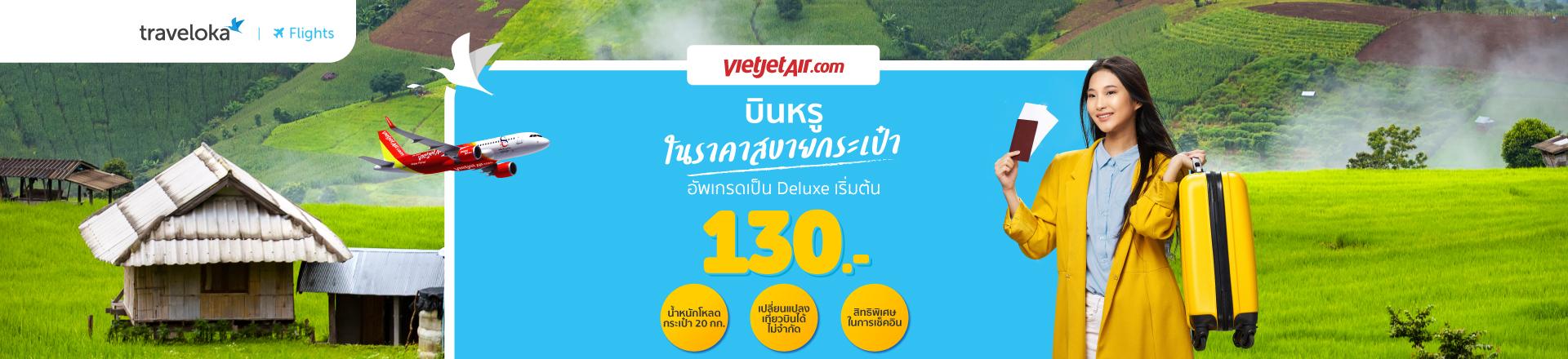 อัปเกรดเที่ยวบินเป็น Deluxe เริ่มต้นเพียง 130 บาทฟรีน้ำหนักกระเป๋า 20 กก./เปลี่ยนเที่ยวบินไม่จำกัด/สิทธิพิเศษในการเช็คอิน