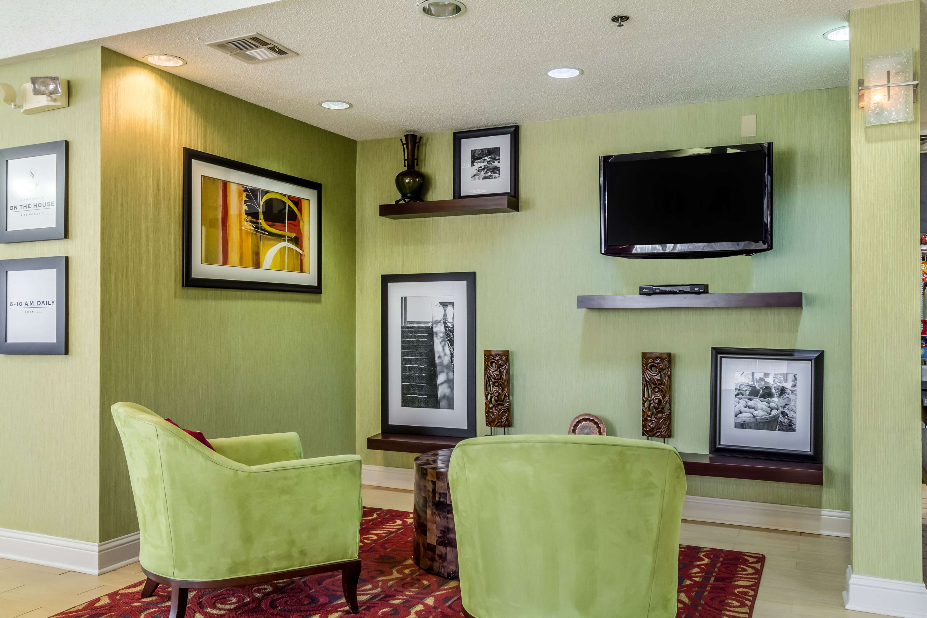 Being a Hampton my expectations were high. There was nothing I really liked about my stay except the bed was comfortable and the staff was nice. Who was dirty the cushions were ripped on the furniture. The maintenance around the property was poor. The whole hotel was run down and knocked well at all. Hampton has a great reputation and cleanliness and beauty that is why we book the hotel. Won't be staying in this one again