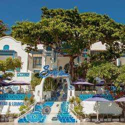 Suntorini Boutique Hotel mang đậm dấu ấn thiết kế của vùng Địa Trung Hải với tông màu trắng xanh đặc trưng, gợi nhớ đến hòn đảo Santorini xinh đẹp của Hy Lạp. Khách sạn nằm ngay trên con đường Hạ Long – tuyến đường ven biển đẹp nhất Vũng Tàu, mang đến cho du khách tầm nhìn tuyệt vời thẳng ra biển xanh.