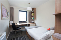 Good location, just off the Meadows. Friendly reception staff. The room was a basic student flat - one of a group of 4 individually lockable rooms with a shared front door, with en suite shower and toilet. Bed was a compact double - probably a three-quarter size. The room was basic but adequate. Towels and bedding and a single soap supplied, but no extras like shampoo, TV, hairdryer. Free wifi if you log on to the student network. There's a shared well equipped kitchen if you want to self cater. Great location for the Meadows and a 10 minute walk to Grassmarket. The area was quiet at night which was a bonus during the fringe! Good value for money for the fringe, but definitely no frills.