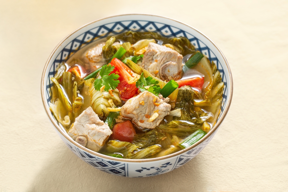 越南酸汤是道地经典的越南料理,酸味来自罗望子。汤里有各种蔬菜,而其中最特别的就是大野芋梗,它吸满了酸甜的汤汁却保持爽口,是整碗汤的精华所在。
