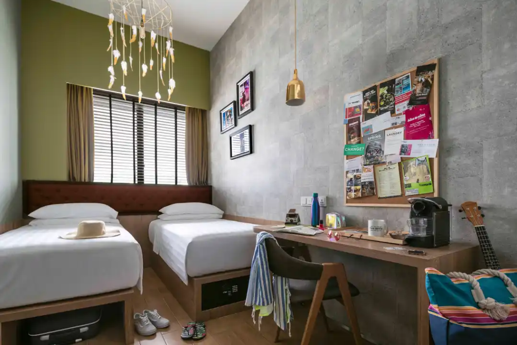 房间主要设计为两人入住,每间客房都配有办公桌和床边插座。房间设计时尚,有大片落地窗和高床,让客人可以躺在床上欣赏新加坡的城市景观。