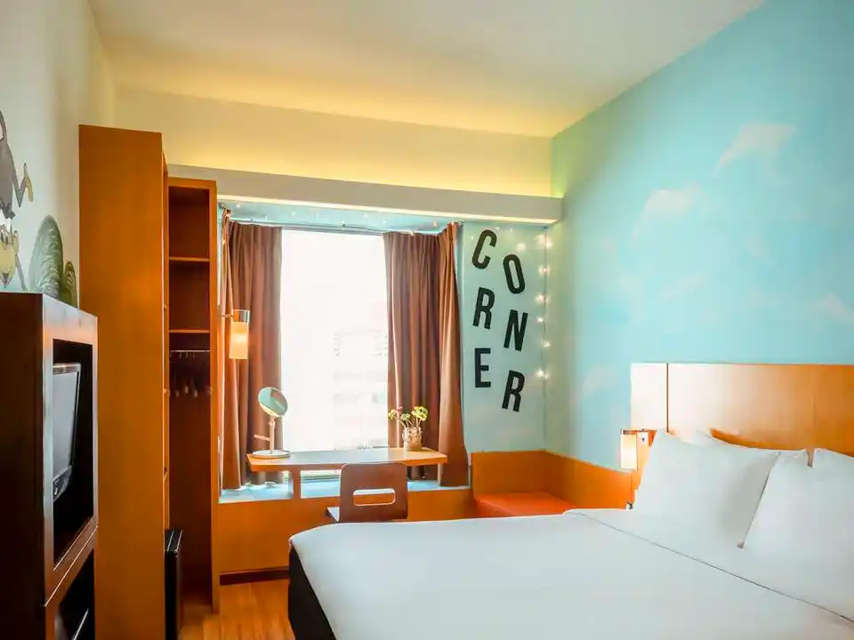 Ibis新加坡的客房设计舒适现代,装饰精美,拥有舒适的品牌床上用品、沏茶和泡咖啡的设施,以及私人浴室。